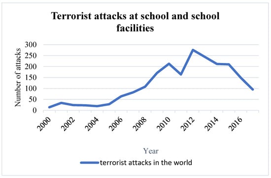 The evolution of terrorist attacks at schools and school facilities in 2000–2017 [20].