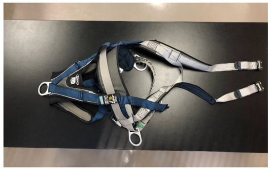 Figure 2. A harness placed on a table before the subject begins a donning process. Photo by Zachary Bunney [28].
