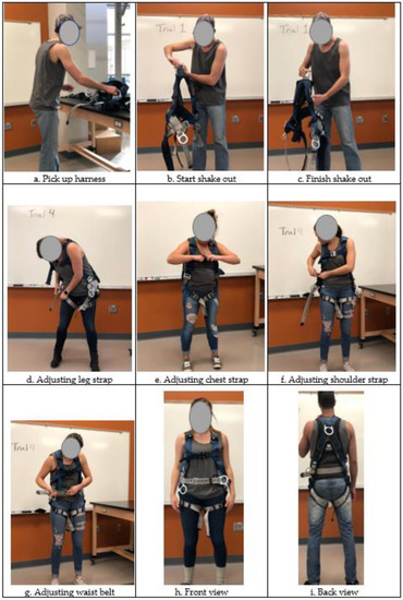 28. Bunney, Z. Effects of Repetition on Time to Don and Adjust a Fall Protection Harness. Master’s Thesis, Montana Technological University, Butte, MO, USA, 2019. [Google Scholar]