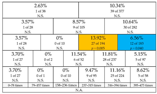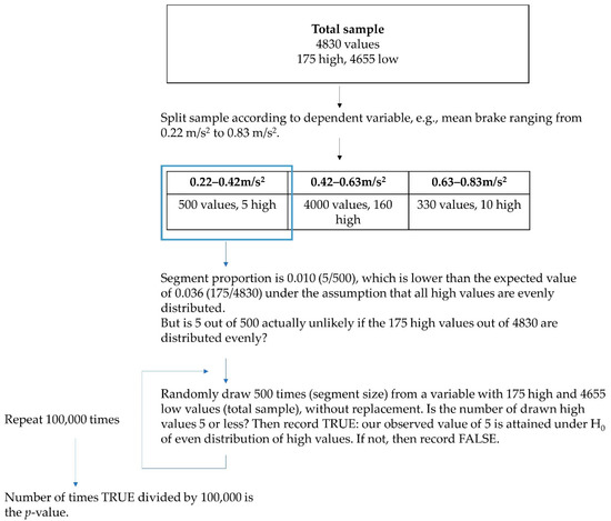 p-value was calculated per segment by comparing the observed number of high values with the number of high values that is expected for the segment under the H0 assumption that there was no difference between segments. The analyses were run in R, version 3.6.2. No additional packages were used for the analyses. The R Code is provided in