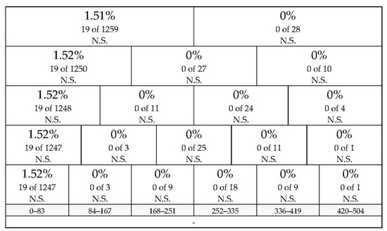 To test the relation between the binary dependent variable and the (ratio) independent variables, a logistic regression analysis was considered. However, the assumption of linearity of independent variables and log odds was violated. Since there was no continuously increasing effect and we wanted to understand the actual shape of the relation, we considered an alternative analysis. In piecewise regression, more than one line is fitted to the data. Multiple points in the independent variable can be chosen to split the data. These points of separation are called knots. Choosing the number of knots and their location is however very difficult. To refrain from using subjective input we decided to split the data evenly five ways. The first split was in half. The second split was in three segments, the third in four segments, the fourth in five segments, and the fifth in six segments. The different splits lead to differences in under- and overfitting and in sample size per segment. Most importantly, insight is provided on the shape of the curve, which can be difficult with a binary dependent variable. The effect of knot selection is also shown. If the pattern remains the same across splits this is evidence for an effect.