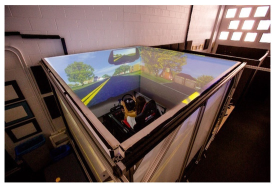 In recent times, SBT has been implemented for supplementary teen driver education and performance assessment [11,12,13,14,15] with numerous key advantages. For example, training simulators have been implemented to improve driver understanding and detection of hazards and are useful for enhancing the situational awareness of novice drivers [16,17]. Furthermore, training in the controlled environment of a simulator provides critical exposure to many traffic situations (and some that are rarely encountered while driving a physical vehicle), trial-and-error (i.e., freedom-to-fail), safety/repeatability, and digital, real-time metrics of driving performance [18]. Training in a simulator can be extremely engaging—especially so for young trainees—and provides young learners with critical additional seat-time to common driving situations in an educational setting that is active and experiential [19,20]. Likewise, other recent studies [21] have investigated correlations between simulation performance (e.g., violations, lapses, errors, driving confidence) and natural tendencies observed when driving a physical vehicle (on-road).