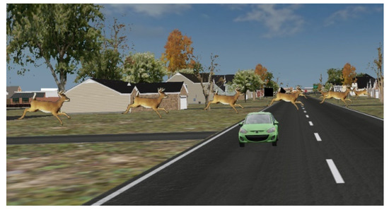 • An animal crossing within a quiet cul-de-sac (see Figure 10)