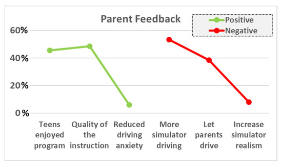 Finally, a participant satisfaction form was issued upon program exit to solicit overall program rating, comments, and suggestions. Separate forms were given both to the drivers (students) and to their parents. The student form asked a series of questions (10-point Likert scale) and also contained three open-ended questions asking students for different types of feedback on the program. The parent form assessed what parents thought of the program as a whole and was emailed to parents after their child had completed the entire 10 h program. Open-ended feedback comments (from students as well as parents) were later tabulated coded to provide trend metrics.