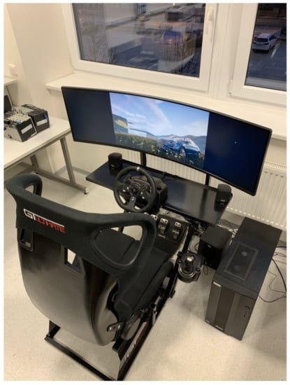 In all state-of-the-art technologies, safety embodies a most important parameter. Scientists and engineers are attempting to combine adequate safety precautions, considering all relevant aspects, while making every effort to maintain a reasonable price for the final product. These facts obviously apply also to the automotive industry and the development of new technologies that are or will be implemented in modern cars []. Many tests are conducted to evaluate vehicles or drivers (for example, the moose test); such assessment, however, tends to be rather costly and, most significantly, potentially dangerous for the test subjects (drivers). In order to create a safe test environment, vehicle driving simulators find use as an effective, simulation-based alternative comprising multiple scenarios that may be difficult to execute in real life. The advantages of a simulator are presented in [,,].