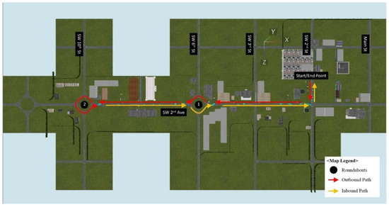 - Classen, S.; Wersal, J.; Mason, J.; Rogers, J.; Sisiopiku, V. Face and Content Validity of an Automated Vehicle Road Course and a Corresponding Simulation Scenario. Front. Futur. Transp. 2020, 1. [Google Scholar] [CrossRef]