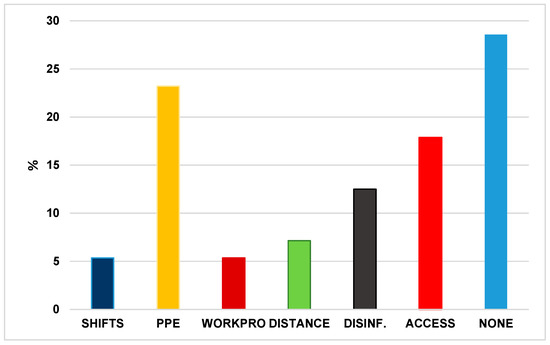 - Cirrincione, L.; Plescia, F.; Ledda, C.; Rapisarda, V.; Martorana, D.; Moldovan, R.E.; Theodoridou, K.; Cannizzaro, E. COVID-19 Pandemic: Prevention and Protection Measures to Be Adopted at the Workplace. Sustainability 2020, 12, 3603. [Google Scholar] [CrossRef]