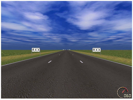 Figure 2. Screenshot in the study simulator setting of the Lane Change Task version 1.2 by Mattes [37].