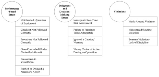 - Wiegmann, D.A.; Shappell, S.A. A Human Error Approach to Aviation Accident Analysis: The Human Factors Analysis and Classification System; Routledge: Abingdon, UK, 2017. [Google Scholar]