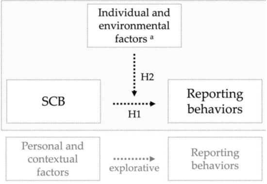 The reporting behavior-specific individual and environmental factors derived from the mentioned preparatory study go beyond person- and situation-related factors affecting an overall “individual’s willingness to exert effort to enact safety behaviors” [37] (p. 947) in the IMWS [36]. We therefore hypothesize that voluntary reporting behavior may not be explained solely by these factors and that the individual and environmental motivational factors relating exclusively to reporting behavior outlined in this section might have an effect on the magnitude of the positive relation between fundamental SCB and reporting behavior. Our second research hypothesis is therefore:
