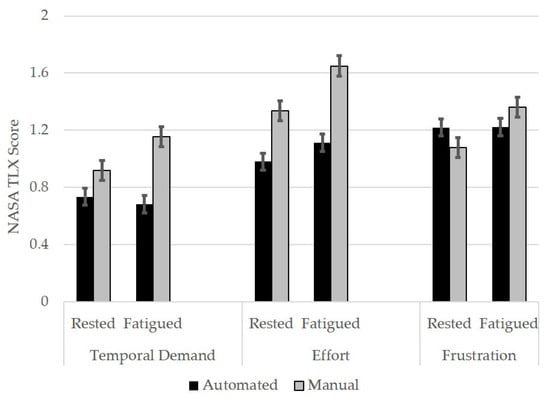 - Hart, S.G.; Staveland, L.E. Development of NASA-TLX (Task Load Index): Results of Empirical and Theoretical Research. In Human Mental Workload; Hancock, P.A., Meshkati, N., Eds.; North-Holland: Amsterdam, The Netherlands, 1988; pp. 139–183. ISBN 9780444703880. [Google Scholar]
