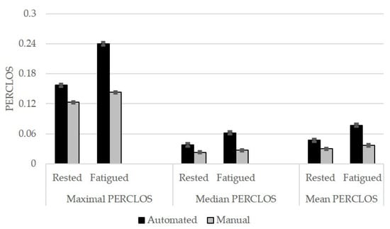 - Sommer, D.; Golz, M. Evaluation of PERCLOS based current fatigue monitoring technologies. In Proceedings of the 2010 Annual International Conference of the IEEE Engineering in Medicine and Biology, Buenos Aire, Argentina, 31 August–4 September 2010; pp. 4456–4459. [Google Scholar] [CrossRef]