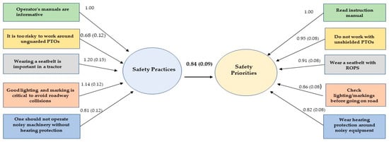3.5. Structural Equation Model of Machinery Safety Practices and Priorities