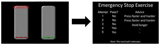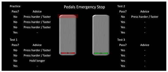 Example of the proposed Pedals Emergency Stop© combined task and results layout.