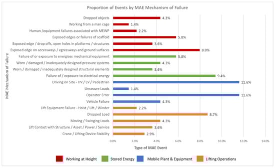 The most frequent MAE hazards included ‘driving interactions and operator error’, ‘lifting operations—dropped load’, ‘uncontrolled electrical energy release’ and ‘falls due to access/egress from plant or unstable ground’ (