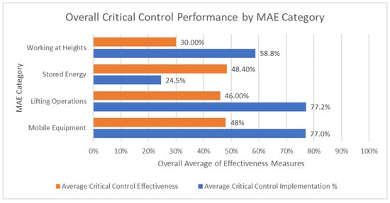 Figure 6) identified Mobile Equipment (77%) and Lifting Operations (77.2%) as having the strongest CC implementation rate, with Stored Energy (24.5%) having, overall, the weakest CC implementation rate. The CC effectiveness rate was, on average, 30% lower than the CC implementation across the MAE categories, except for Stored Energy.