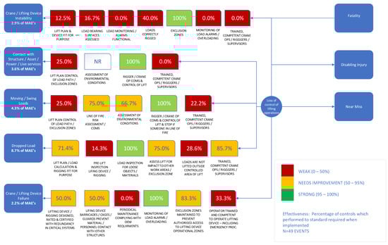 All Lifting Operation MAE hazards compromised CC prevention pathways with two or more CC effectiveness measures being compromised by having a 50% or lower failure rate when the control is implemented (