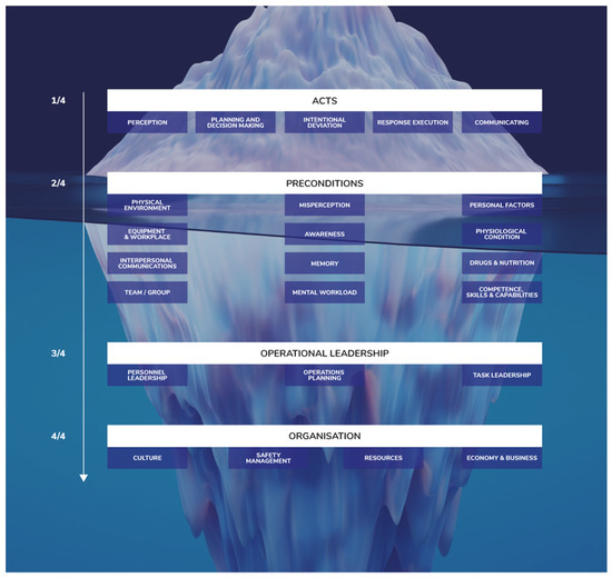 Considering HF in safety is complex and multi-layered in nature. Similar to Heinrich’s safety iceberg [7], this may be envisioned as an HF iceberg since (i) what typically can be seen in incident reports is the tip and there is usually much more underneath, and (ii) to prevent the recurrence of a type of incident, one needs to take care with what is under the waterline, and not only focus on what is above: