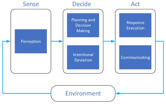 The Acts layer represents a sense—decide–act loop (Figure 2). Sensing issues are represented by the category Perception. It should only be used if there is evidence that information was not well perceived by an operator. Problems with the interpretation/integration of one or more information streams are part of the category Planning and Decision Making. Issues with decision-making on the basis of correctly sensed information are represented in the categories Planning and Decision Making, and Intentional Deviation, where the latter category is strictly used if the operator intentionally deviated from a procedure. Issues with acting on the basis of a correct decision/plan (slips, lapses) are represented in the categories Response Execution and Communicating, where the latter focusses on communications acts.
