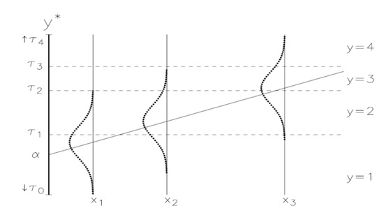Model of latent variable cutoffs from ordered logistic regression.