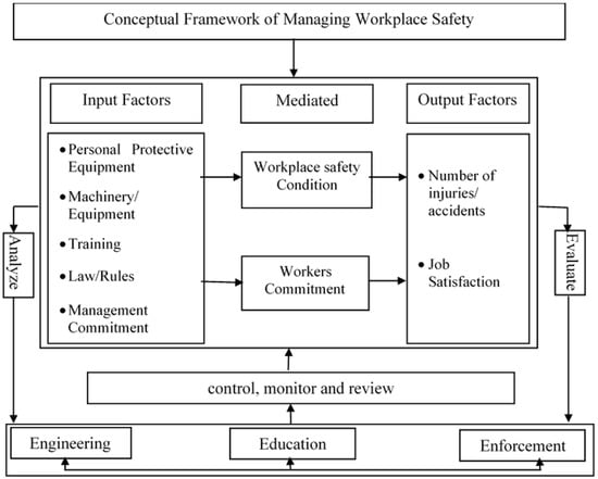 This study found that each independent factor, such as personal protective equipment, machinery and equipment, management commitment, law enforcement, training, workplace conditions, and workers’ commitment, has a significant weak effect on each dependent factor, i.e., the number of accidents and job satisfaction. This finding indicates that the outcome of a single factor is weaker; for example, if training is provided, but workers are not committed, the effect will be low. The final structural equation model verified that the effects of correlated factors significantly strengthen the influence of any single factor.