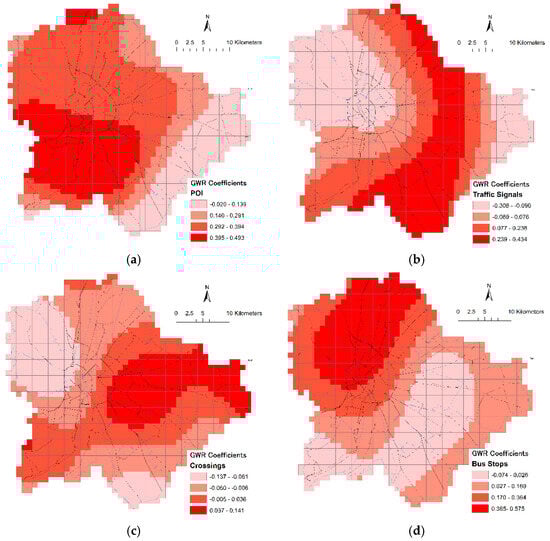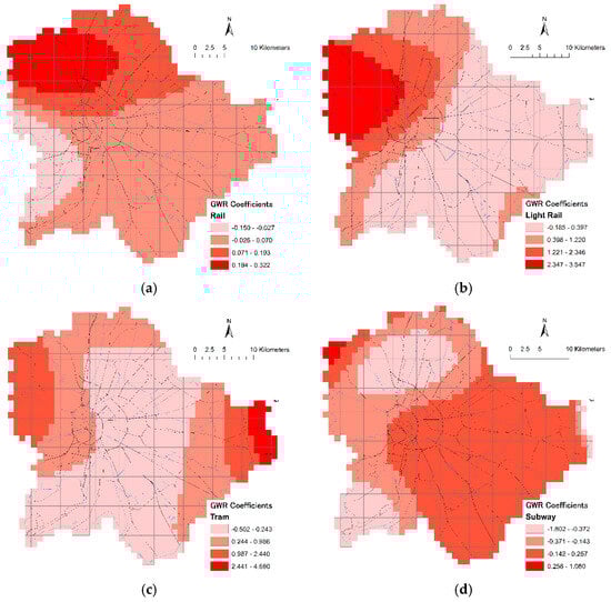 (a–d): GWR Coefficients of the Rail Network Classification.