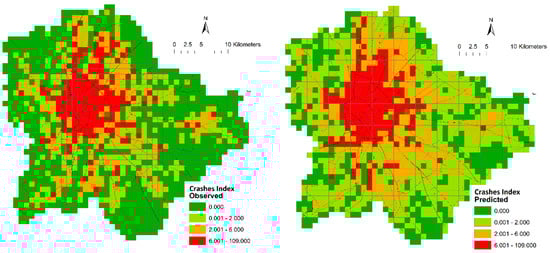 When comparing the observed bike crash index with our model, it is noticed that the GWR coefficients of the index are spatially almost similar, explaining 78.6% of the variation in the bike crash index by the independent variables.
