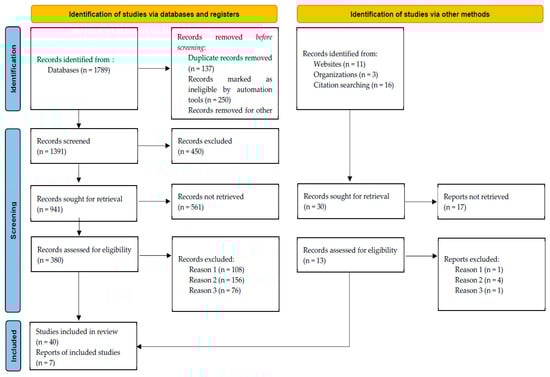 - Moher, D.; Liberati, A.; Tetzlaff, J.; Altman, D.G. Preferred reporting items for systematic reviews and meta-analyses: The PRISMA statement. PLoS Med. 2009, 6, e1000097. [Google Scholar]