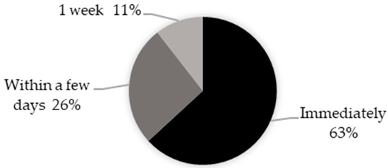 An additional factor that needs to be considered is how quickly data are available after an incident occurs. Obtaining information on injuries in a timely manner is crucial for updating and adjusting strategies based on current problem areas or injury trends. In total, 63% of agencies indicated that data become available immediately after an incident, 26% obtain data within a few days, and 11% have the information available within a week, as shown in Figure 11.