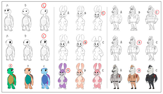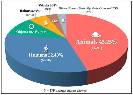Figure 1 shows that animals were favored the most (45.3%), followed by humans (32.4%), and objects (10.6%). The results suggest that animal-like characters should be used for the stickers.