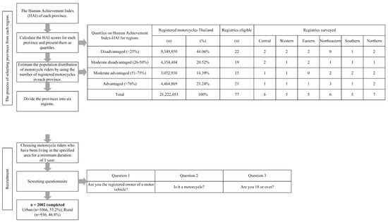 Recruitment procedure for obtaining a representative sample of riders from Thailand.