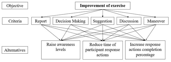 In this study, the players’ response actions were considered as evaluation criteria, and the capability targets of the exercise were considered as alternatives. The application of the weighting method to player response actions is a new and unprecedented study on functional exercise in Vietnam; therefore, no data were available for the application of objective and integrated weighting methods. Therefore, we selected a subjective weighting method.