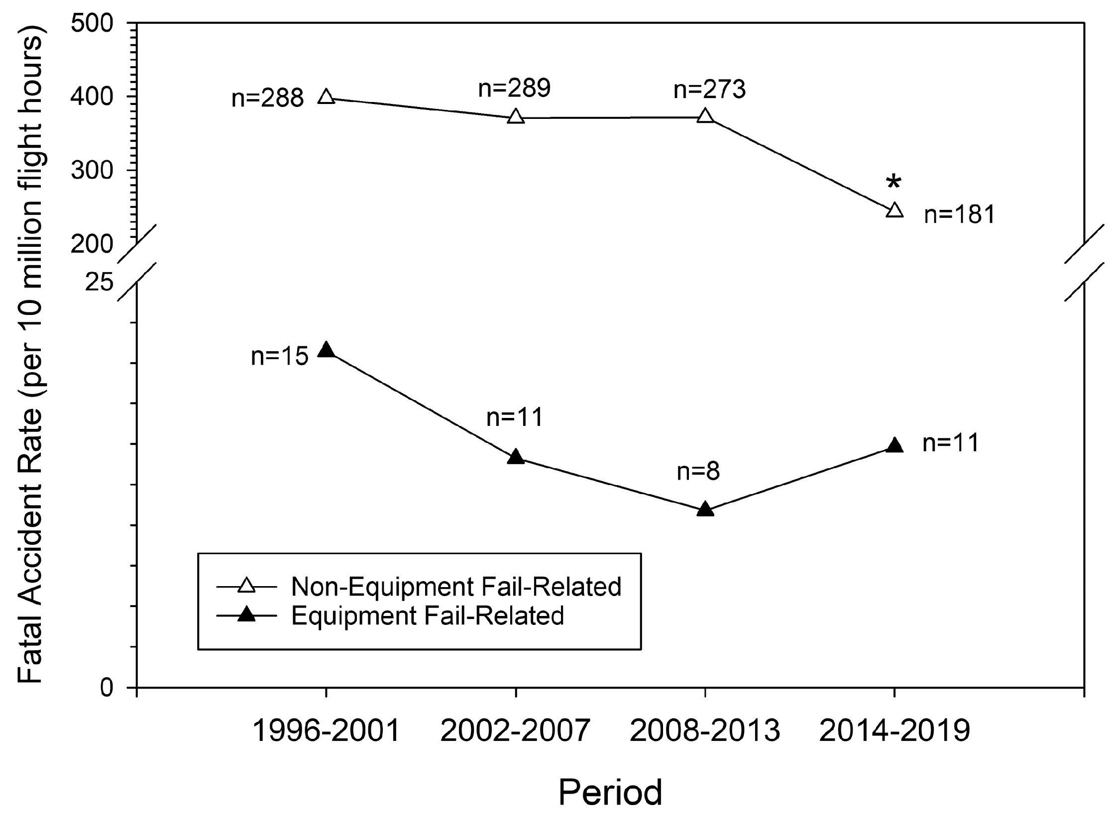 APA StyleBoyd, D. D., & Jin, L. (2025). Static Rate of Failed Equipment-Related Fatal Accidents in General Aviation. Safety, 11(4), 109. https://doi.org/10.3390/safety11040109