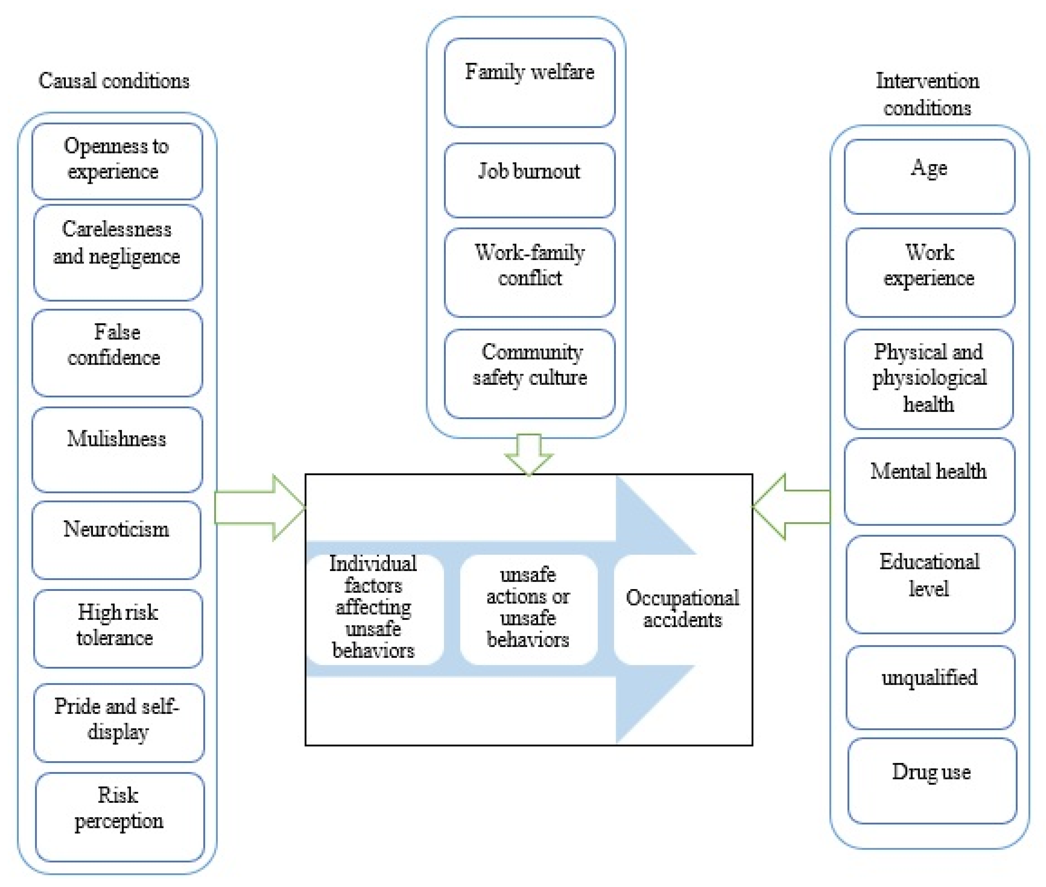 By employing a grounded theory-based conceptual framework, this study underscores that individual behaviors are embedded within a broader organizational and social context. Unsafe actions cannot be fully understood in isolation; rather, they emerge from the dynamic interplay between personal attributes and the surrounding work environment.