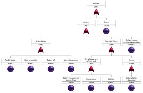 Fault tree analysis is applied to determine the probabilities of top events in order to identify the most concerned events. A fault tree analysis (FTA) will be based on the hazard identified in the HAZID and applying Bayes’ Theorem to determine the final probabilities of top events []. The Bayes’ Theorem is stated in (2):