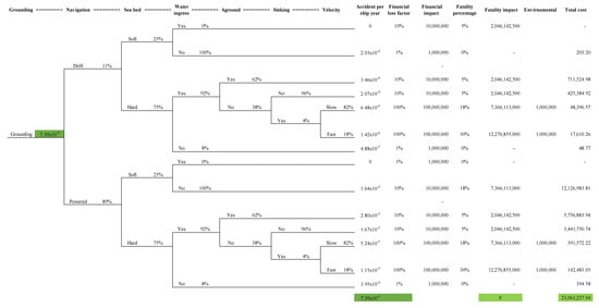 - The environmental impact due to the sinking of the vessel is considered as: a deep sea salvage will cost €5M and a near shore (shallow water) salvage will cost €1M.