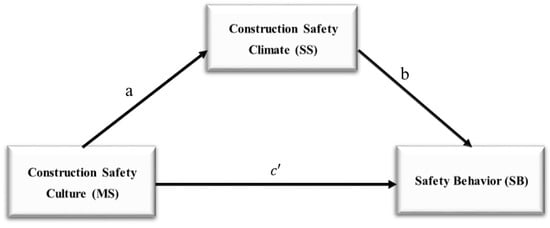 A significant proportion of the construction safety climate is explained by the construction safety culture []. This study aims to understand how construction safety culture directly and indirectly (i.e., through the construction safety climate) influences safety behavior and safety motivation. Accordingly, the current study focused on testing the following hypotheses: