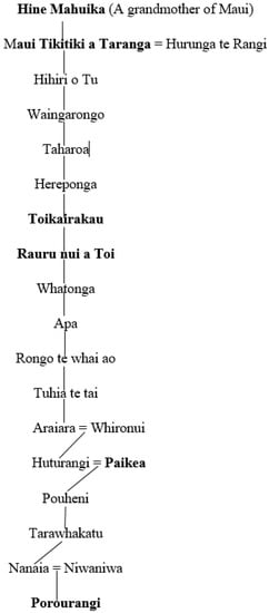 - Ngata, Apirana T. 2019. The terminology of Whakapapa (With an introduction by Wayne Ngata). Journal of the Polynesian Society 128: 19–42. [Google Scholar] [CrossRef]