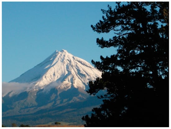 Mount Taranaki on the North Island of New Zealand. (Photograph. by salng [CC-BY-SA 3.0 (http://creativecommons.org/licenses/by-sa/3.0]).
