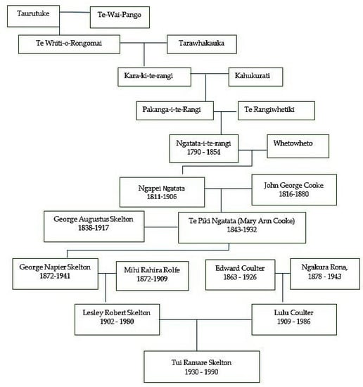 - Hudson, Maui L., Annabel Ahuriri-Driscoll, Marino G. Lea, and Rod A. Lea. 2007. Whakapapa—A Foundation for Genetic Research? Bioethical Inquiry 4: 43–49. [Google Scholar] [CrossRef]