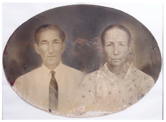 Bartolo Arocho Matias & Herminia Gonzalez Hernandez of Pueblo, Moca, P.R. Bartolo was the brother of Mauricio Arocho Matias, husband of Juana Rodriguez Lassalle. ca. 1940s. Courtesy of Lic. Lorenzo Caban Arocho and family; photo taken by author, 2007.