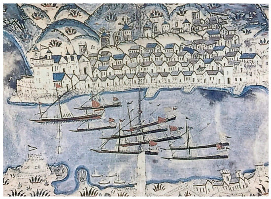 A view of the port of Marseille by a Turkish artist, possibly Matrakçi Nasuh, in 1563. Print courtesy of the Regis family. Public domain.