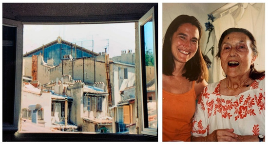 (Left) View from an apartment in the Quartier Belsunce. (Right) The author, Helen A. Regis, with her aunt Françoise Margaritis in Marseille. Photographs courtesy of the Regis family.