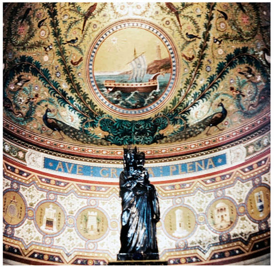 Paintings in Notre Dame de la Garde (Our Lady of the Watch) in Marseille include ships sailing into harbor. Photograph by Helen A. Regis.