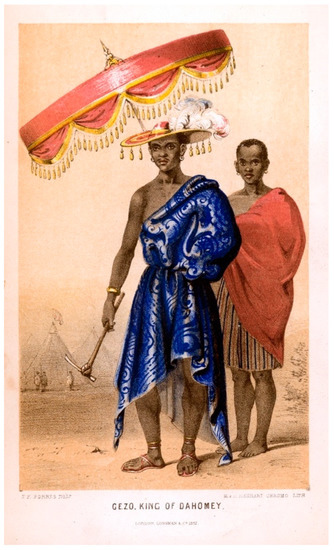 A lithograph of Gezo, King of Dahomey from 1818–1850, by Frederick E. Forbes, published in 1851 in London by Longman & Company. Image courtesy of the Library Company of Philadelphia.