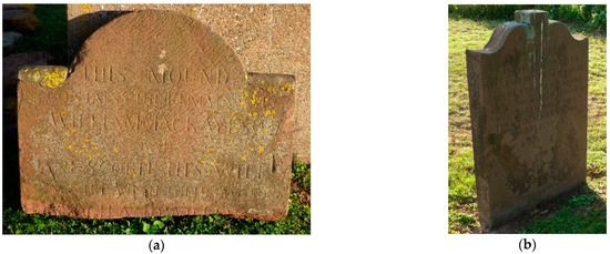 (a) Gravestone of William Mackay and Jane Scobie, Sim’s Field Cemetery (2016); (b) gravestone of Boyce Mackenzie, Sim’s Field Cemetery (2016).