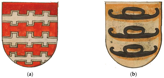 - Wappenbuch. 1501. Wappenbuch-BSB Cod.icon. 392 d. Available online: https://bildsuche.digitale-sammlungen.de/index.html?c=viewer&l=de&bandnummer=bsb00018706&pimage=00179&v=100&nav= (accessed on 1 March 2021).