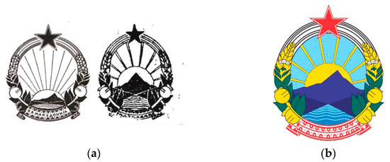 - Jonovski, Jovan. 2018. The Coats of Arms and Other Forms of State Emblem Proposed for the Republic of Macedonia, and the Process of Their Adoption, 1992–2014. Genealogy 2: 52. [Google Scholar] [CrossRef]