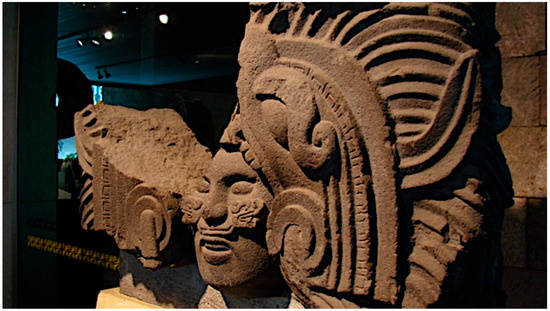 Quetzalcoatl emanating from the maws of the feathered serpent. Photo taken by 1st author at the National Museum of Anthropology, Mexico City, Mexico.