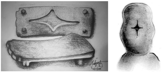 Left—Rendition of portable metate with the carved Venus Star on its underside. Drawing by 1st author after Guthrie (1995, p. 291). Right— Rendition of Olmec-style figurine head with the Venus Star carved on its posterior part. Drawing by 2nd author after Coe and Diehl (1980, p. 267).